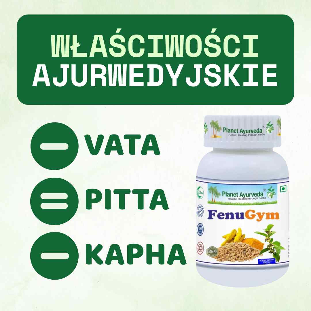 Fenugym to unikalna ajurwedyjska mieszanka czterech ziół: kozieradki, gurmaru, kurkumy i salacji. Ta synergiczna formuła wspiera prawidłowy metabolizm tłuszczów i węglowodanów oraz przyczynia się do utrzymania kontroli wagi.