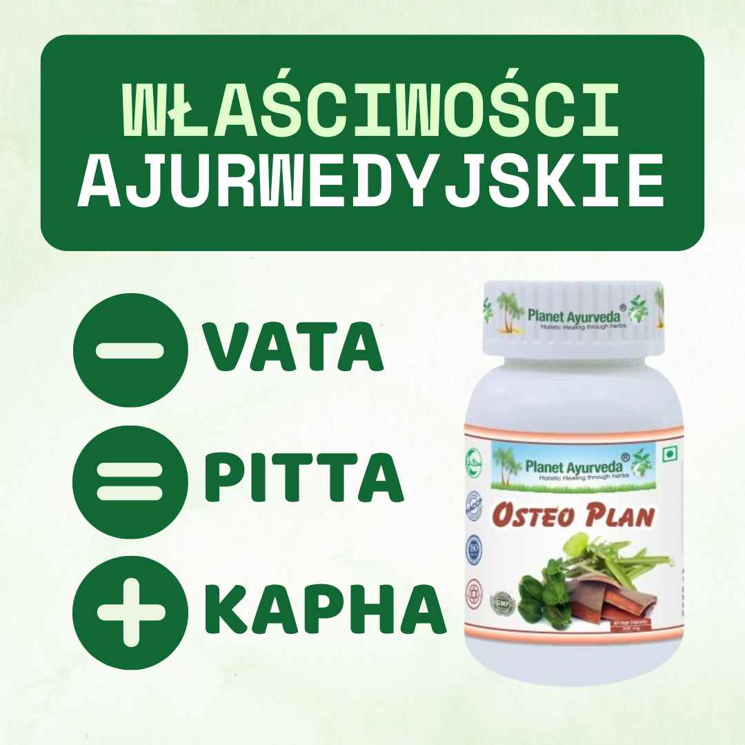 Osteo Plan to ajurwedyjski suplement diety, stworzony w celu wspierania zdrowia układu kostno-stawowego. Pomaga w utrzymaniu prawidłowej struktury kości i chrząstek oraz wspiera zdrowie i elastyczność stawów.