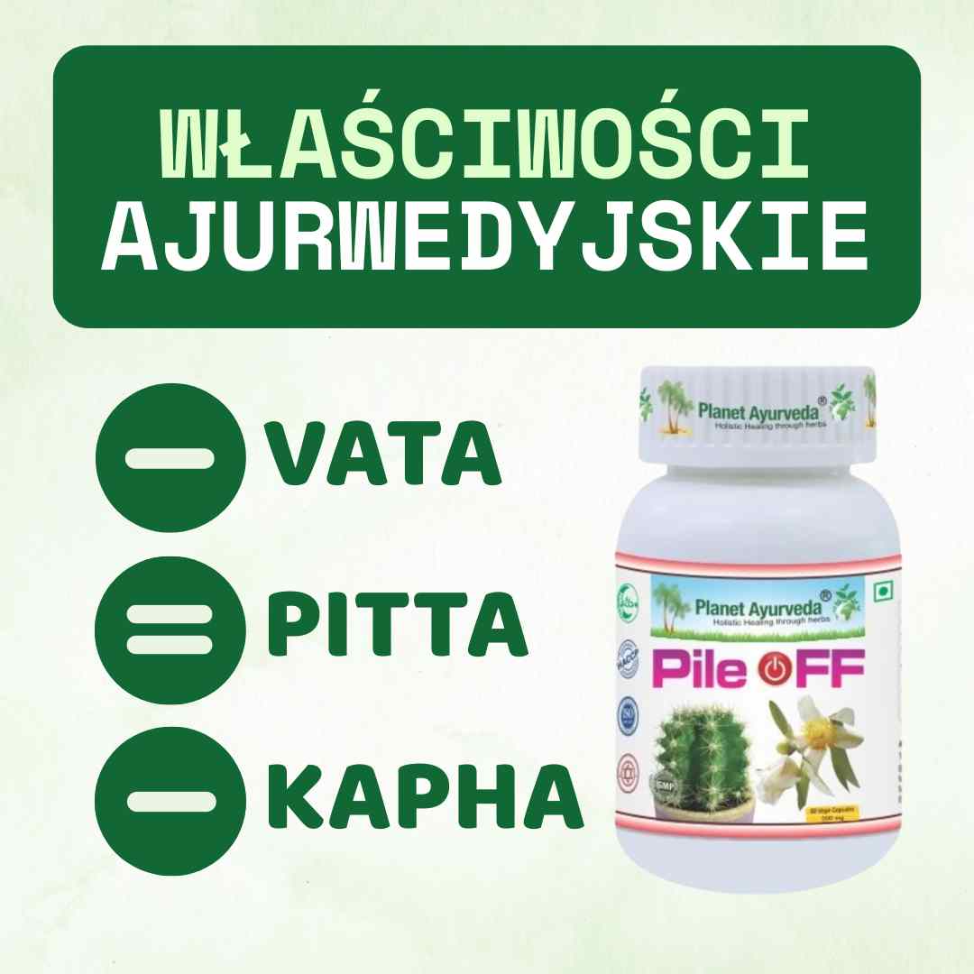 Pile Off to doskonały wybór dla wszystkich, którzy szukają wsparcia ziołowego, zgodnego z zasadami Ajurwedy, dla zachowania komfortu i równowagi układu pokarmowego oraz naczyniowego.